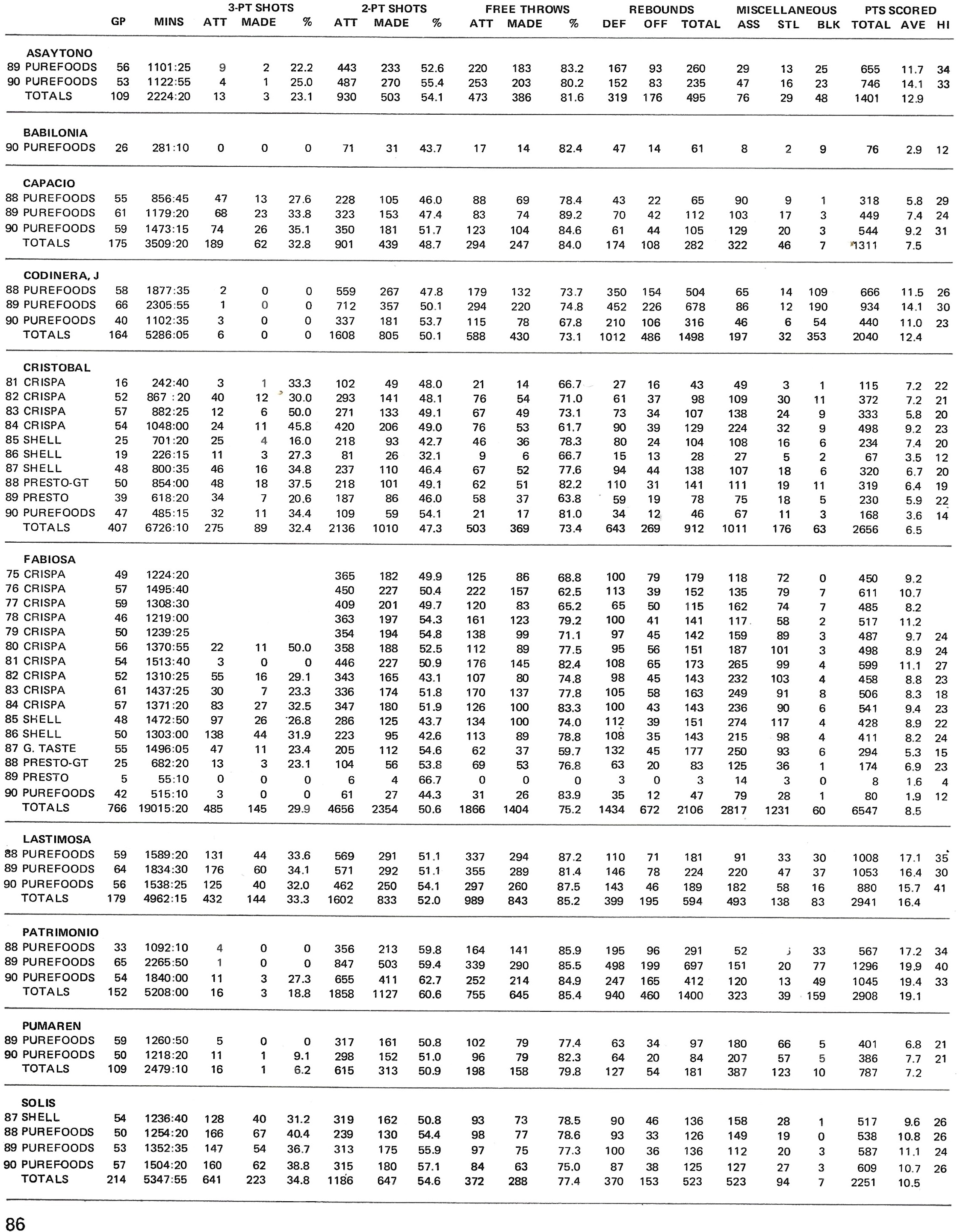 Purefoods Player Statistics Page 86