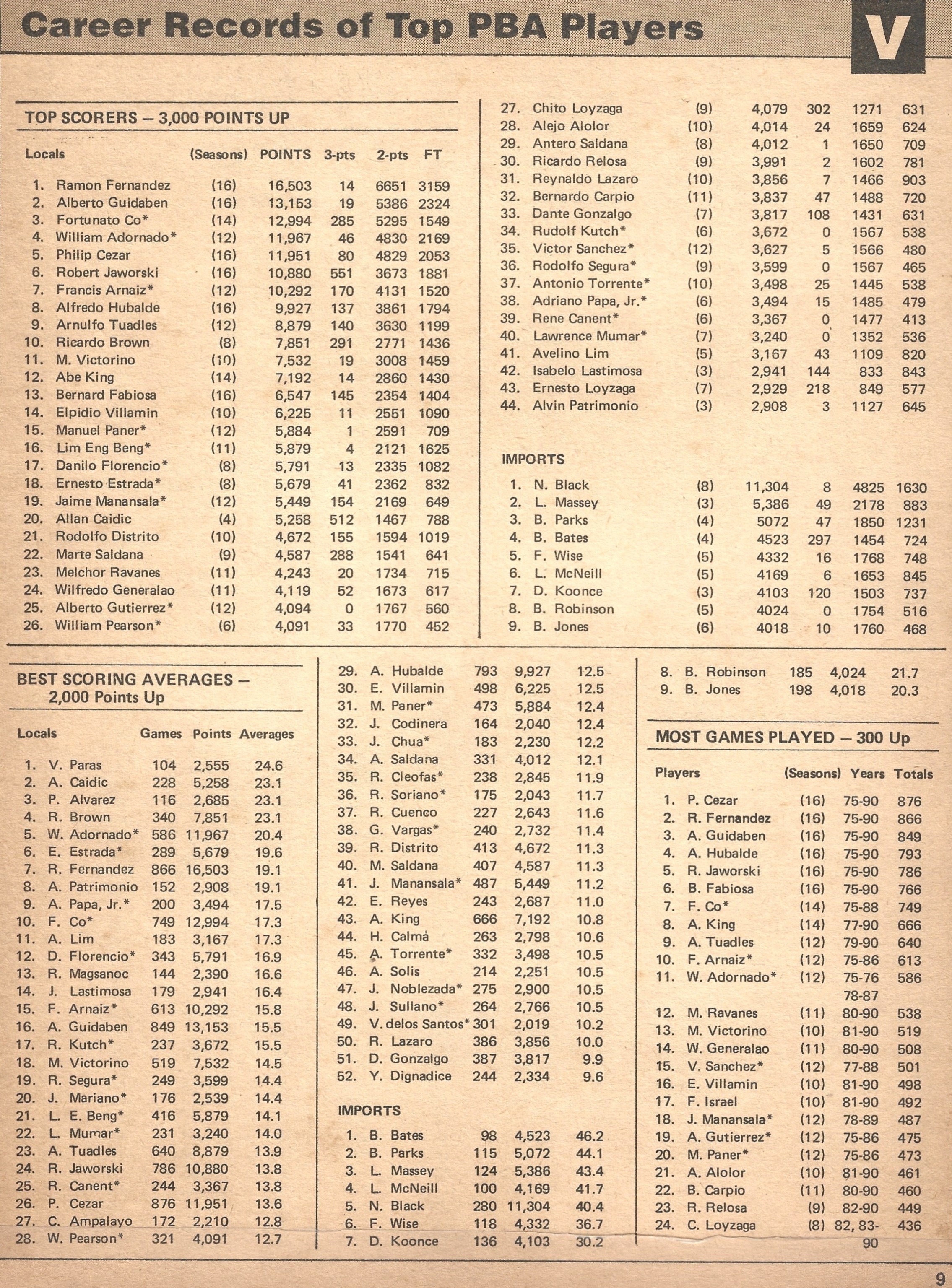 Career Records of Top PBA Players Page 9