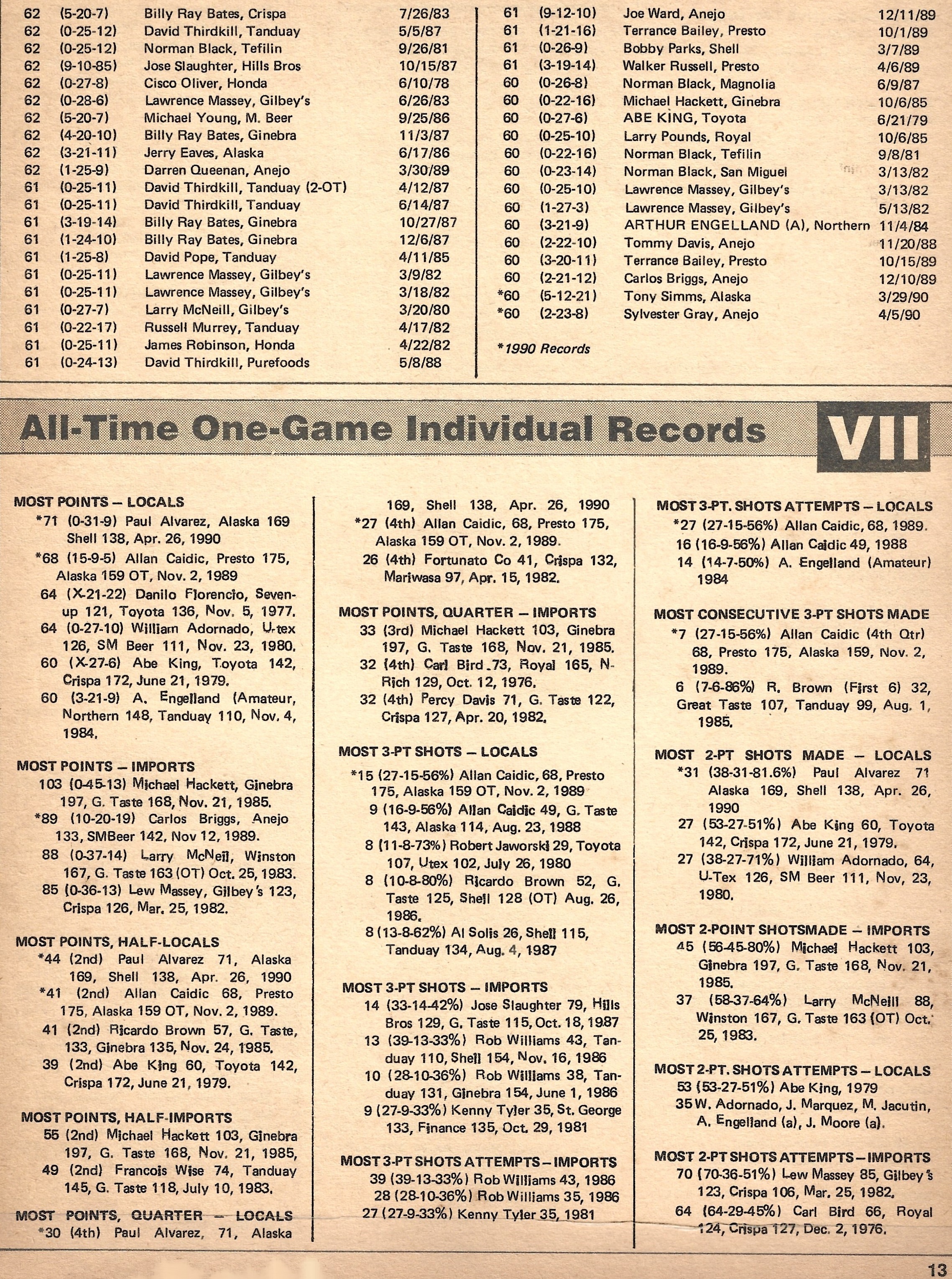 All-Time One-Game Players' Scoring Records and All-Time One-Game Individual Records Page 13