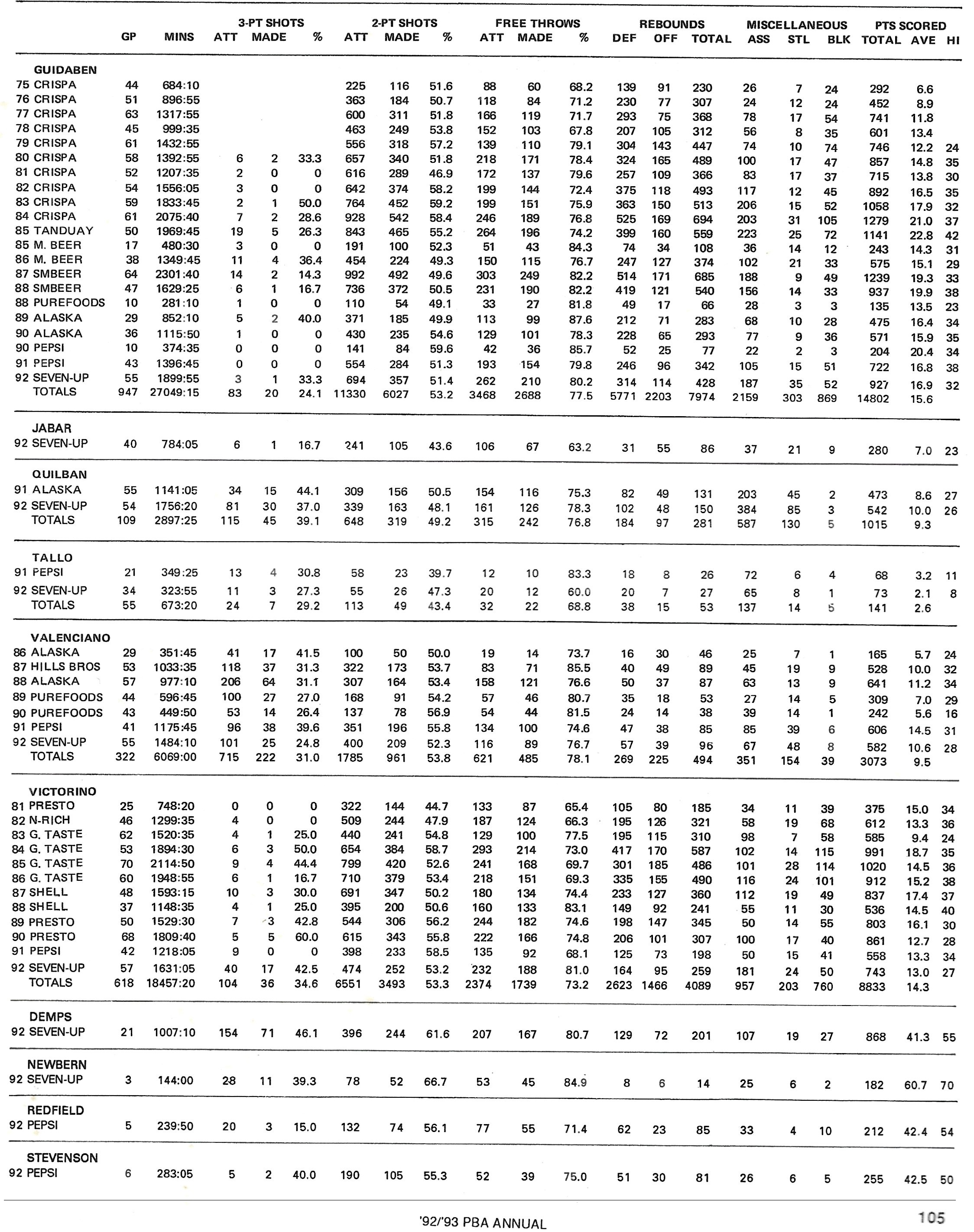 Pepsi/7-Up Player Statistics Page 105