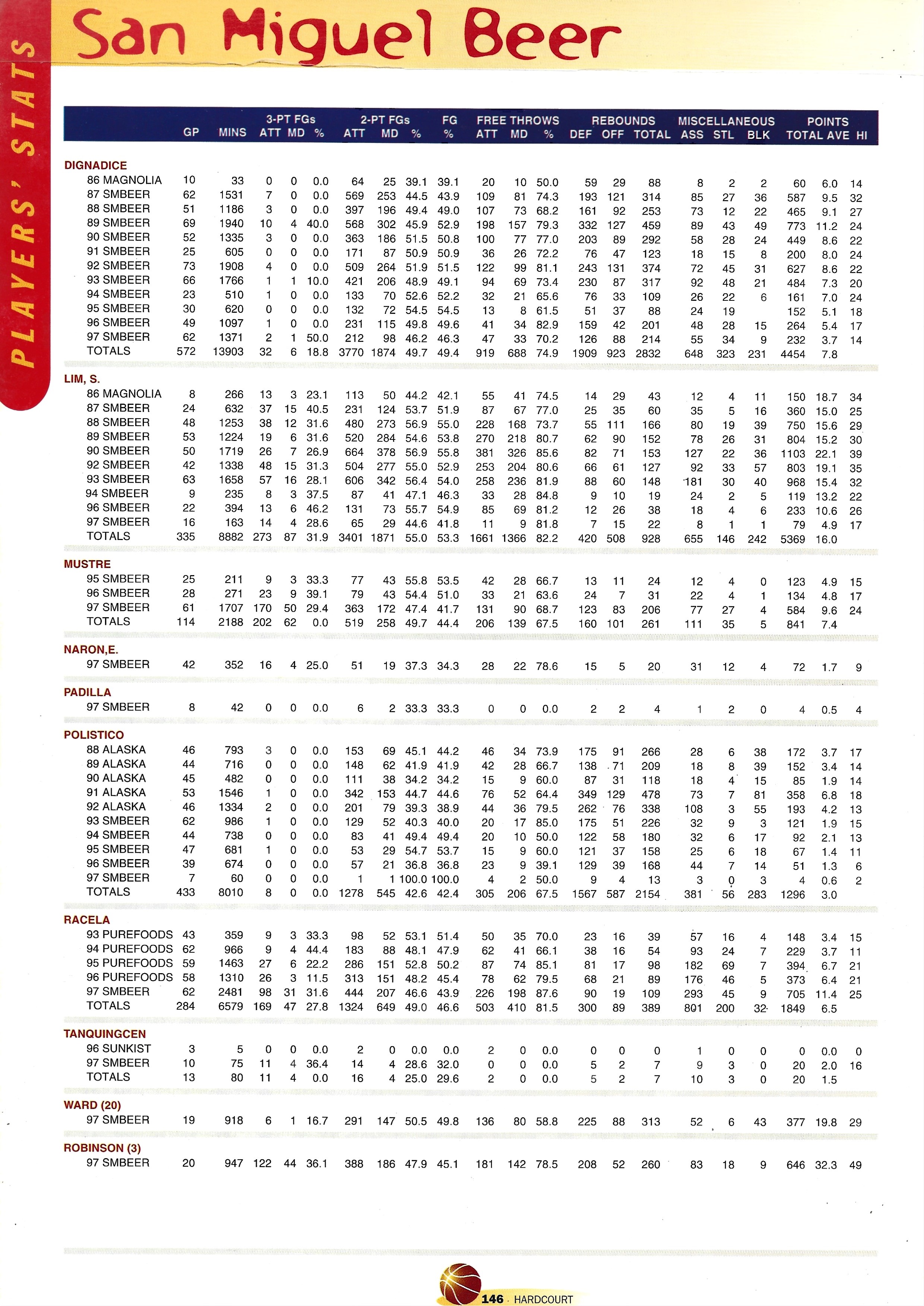 San Miguel Beermen Player Statistics Page 146